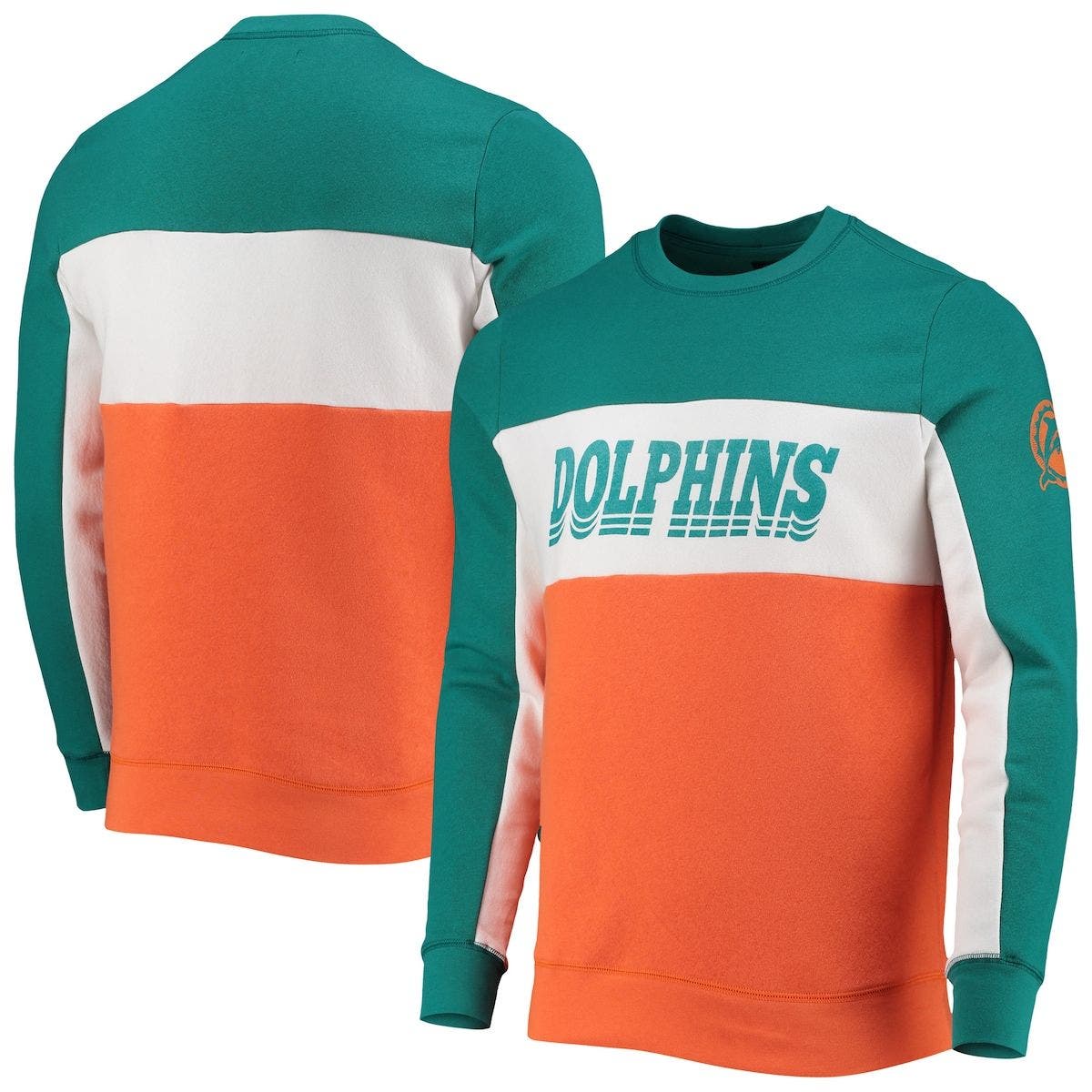 Junk Food Men S Junk Food Aqua Orange Miami Dolphins Color Block Pullover Sweatshirt Nordstrom